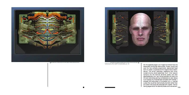 Movies includes the subterranean drilling ship Virgil, retrofuturist cityscapes, time-travel apparatus, and intricate mechanical props—one aspect of a practice that moved between studio lots and private collections.